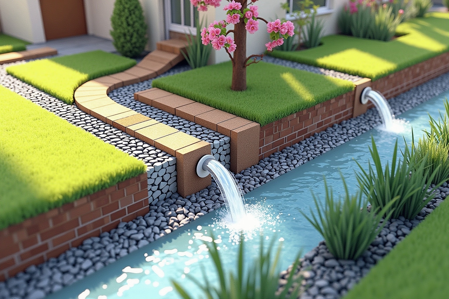- Rinnen und Kanäle: Offene oder abgedeckte Rinnen und Kanäle (z. B. an Hauswänden, entlang von Wegen oder Einfahrten) leiten das Wasser zu Sammelpunkten. Die Wahl des Materials (Beton, Kunststoff, Edelstahl) ist abhängig von Belastbarkeit und Ästhetik.
