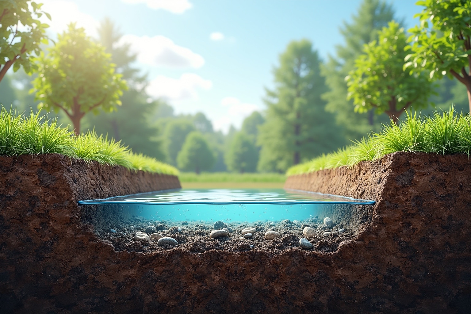 - Grundwasseranreicherung: Speist das natürliche Grundwasservorkommen und trägt zur Sicherung der Trinkwasserressourcen bei.