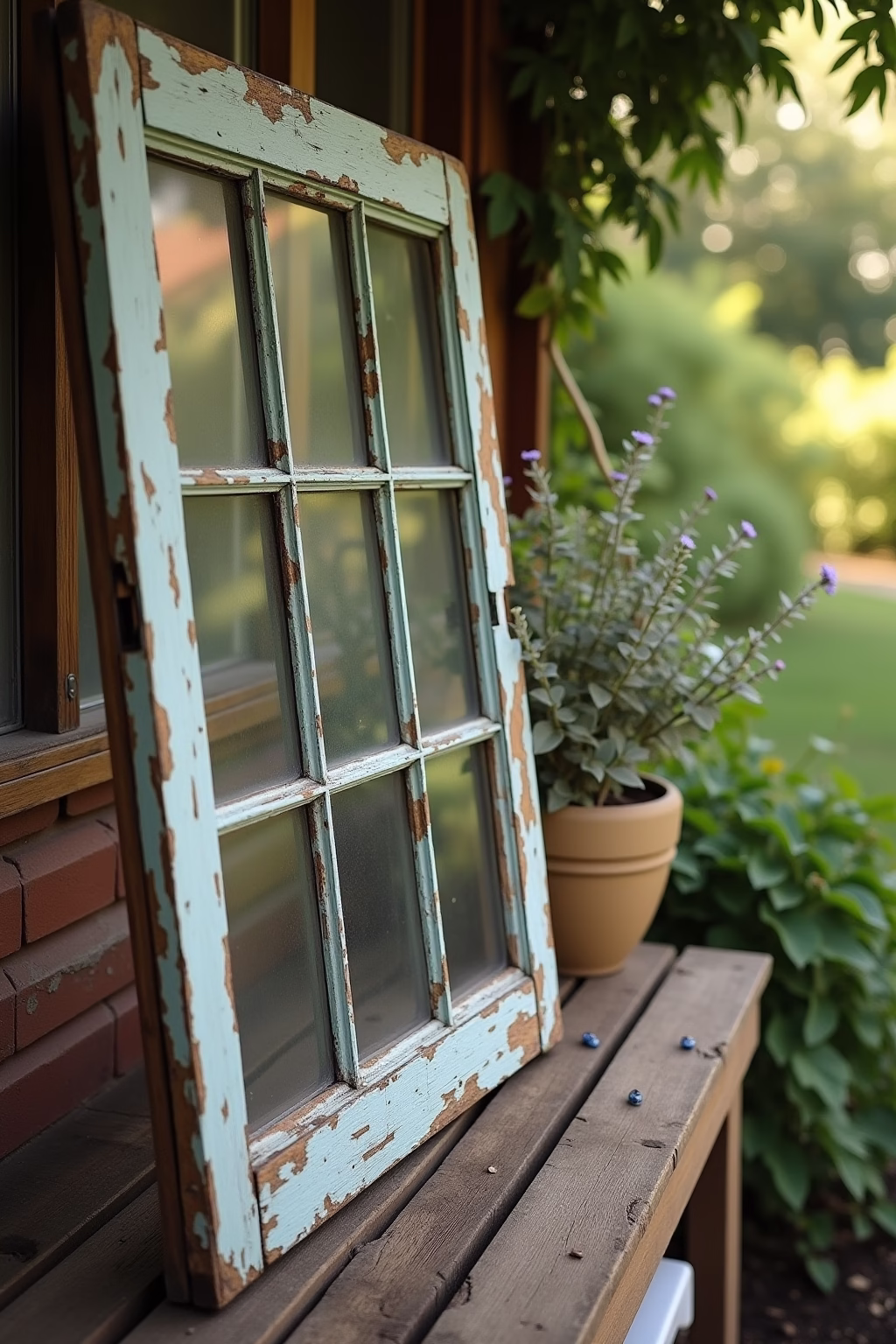 - Alte Fenster bieten authentische Vintage-Optik für Gartenbereiche