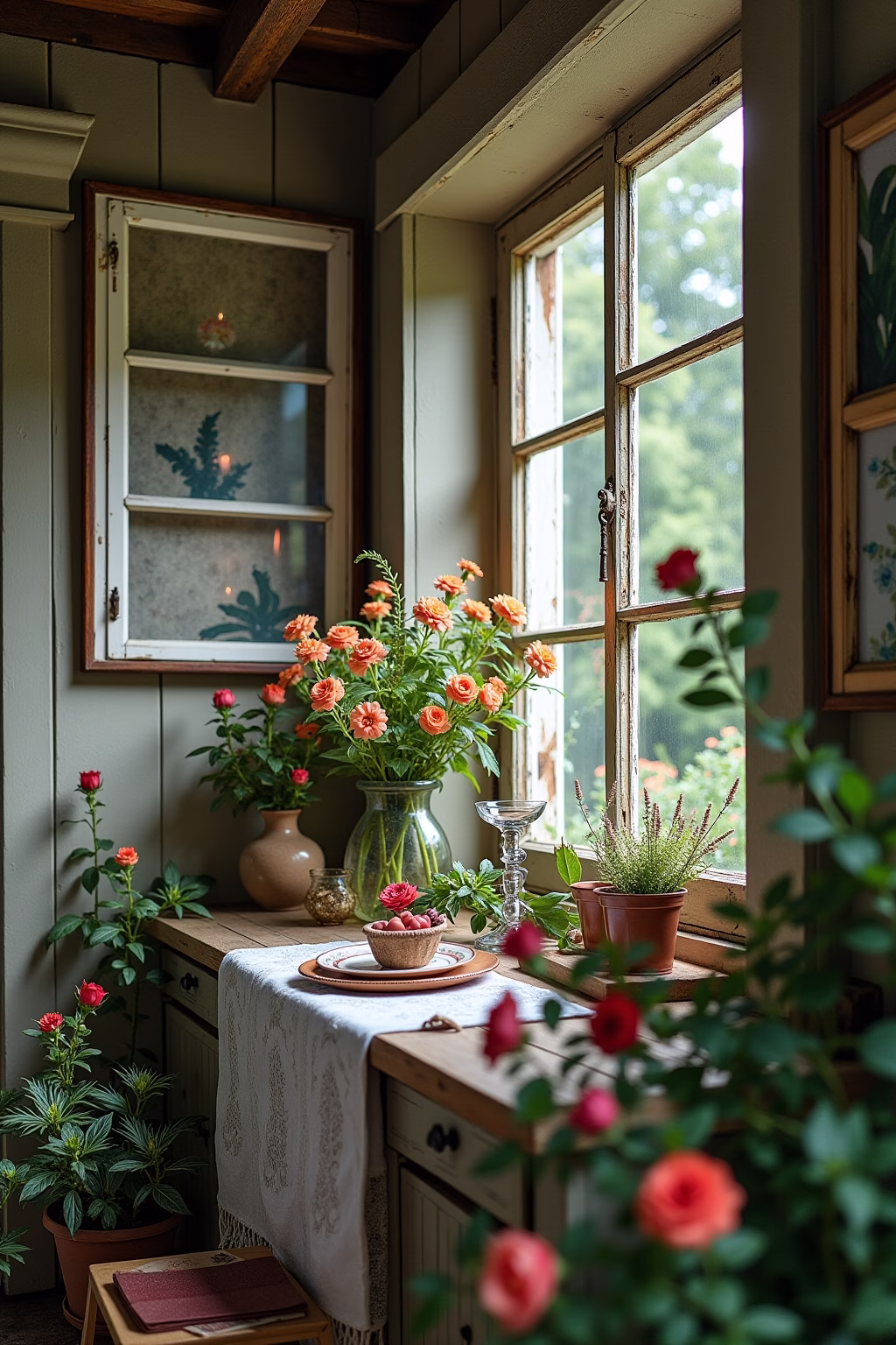 Welche Pflanzen harmonieren besonders gut mit alten Fenstern als Gartendeko?