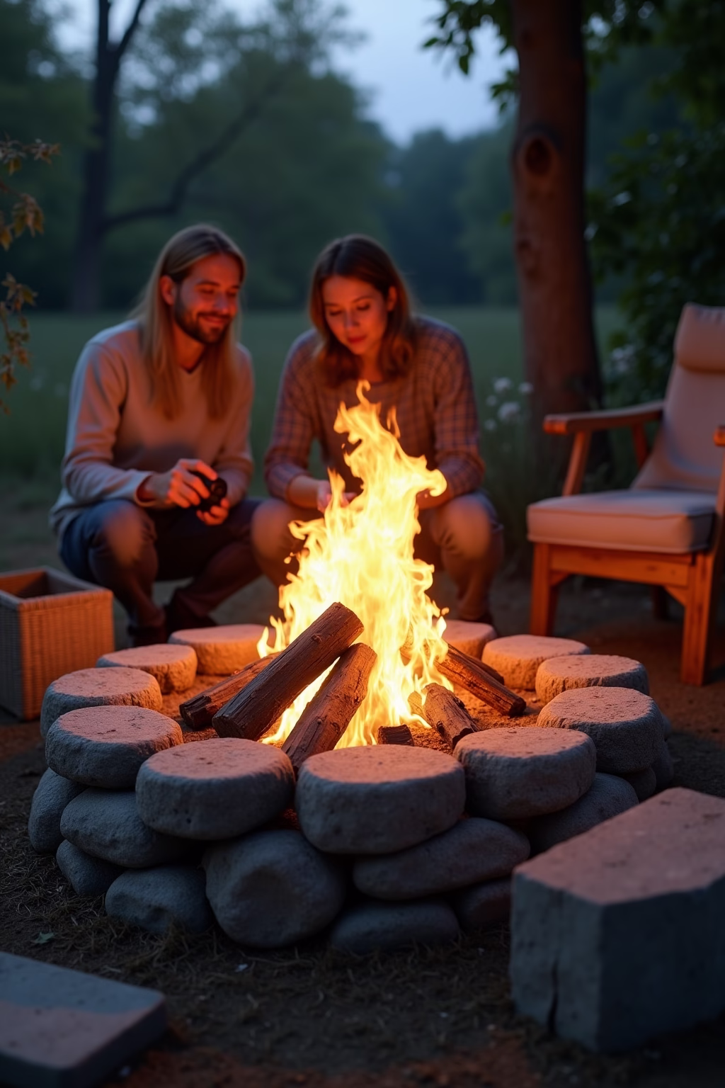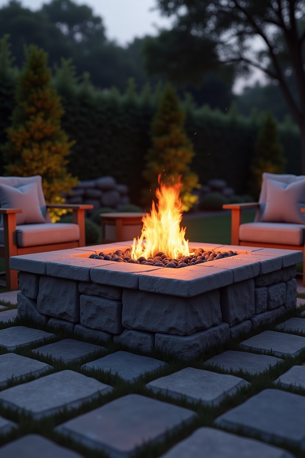 Material: Feuerfeste Materialien wie Naturstein, Beton oder spezielle Feuerschalen aus Metall eignen sich am besten für dauerhafte Gartenfeuerstellen.