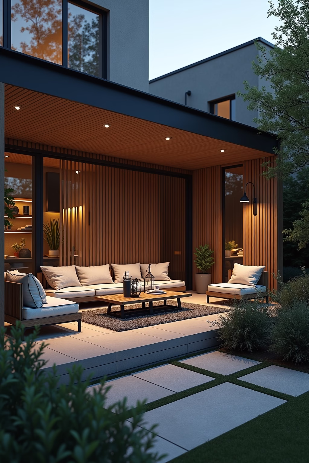 • Gezielte Beleuchtung von Pflanzen oder Gestaltungselementen erzeugt optische Tiefe