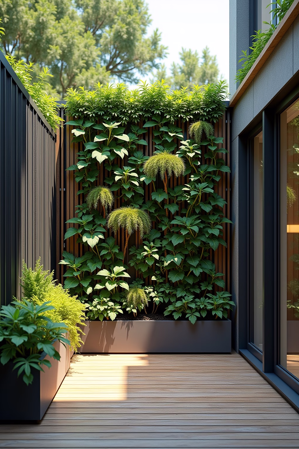 Vertikale Flächen nutzen: Wände, Zäune und Spaliere bieten zusätzlichen Raum für Pflanzen und schaffen mehr Grün ohne wertvollen Bodenplatz zu beanspruchen.