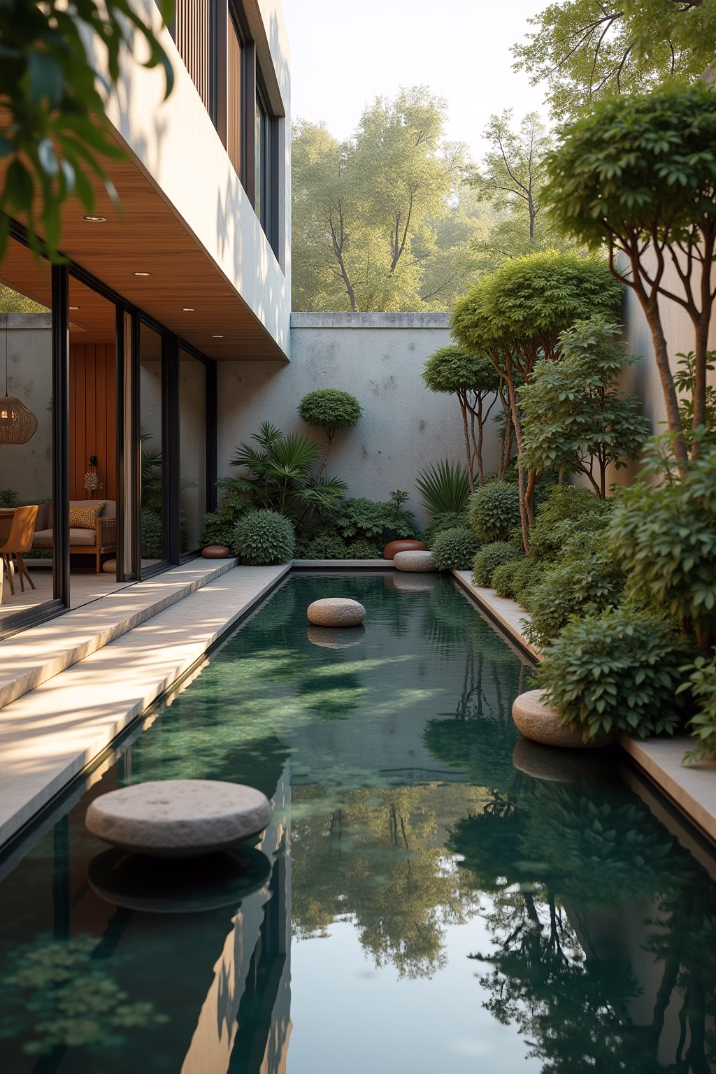 Gestaltungstipp: Kombinieren Sie Wasserflächen mit kleinen Steinen oder Kies für natürliche Übergänge und optische Tiefe.