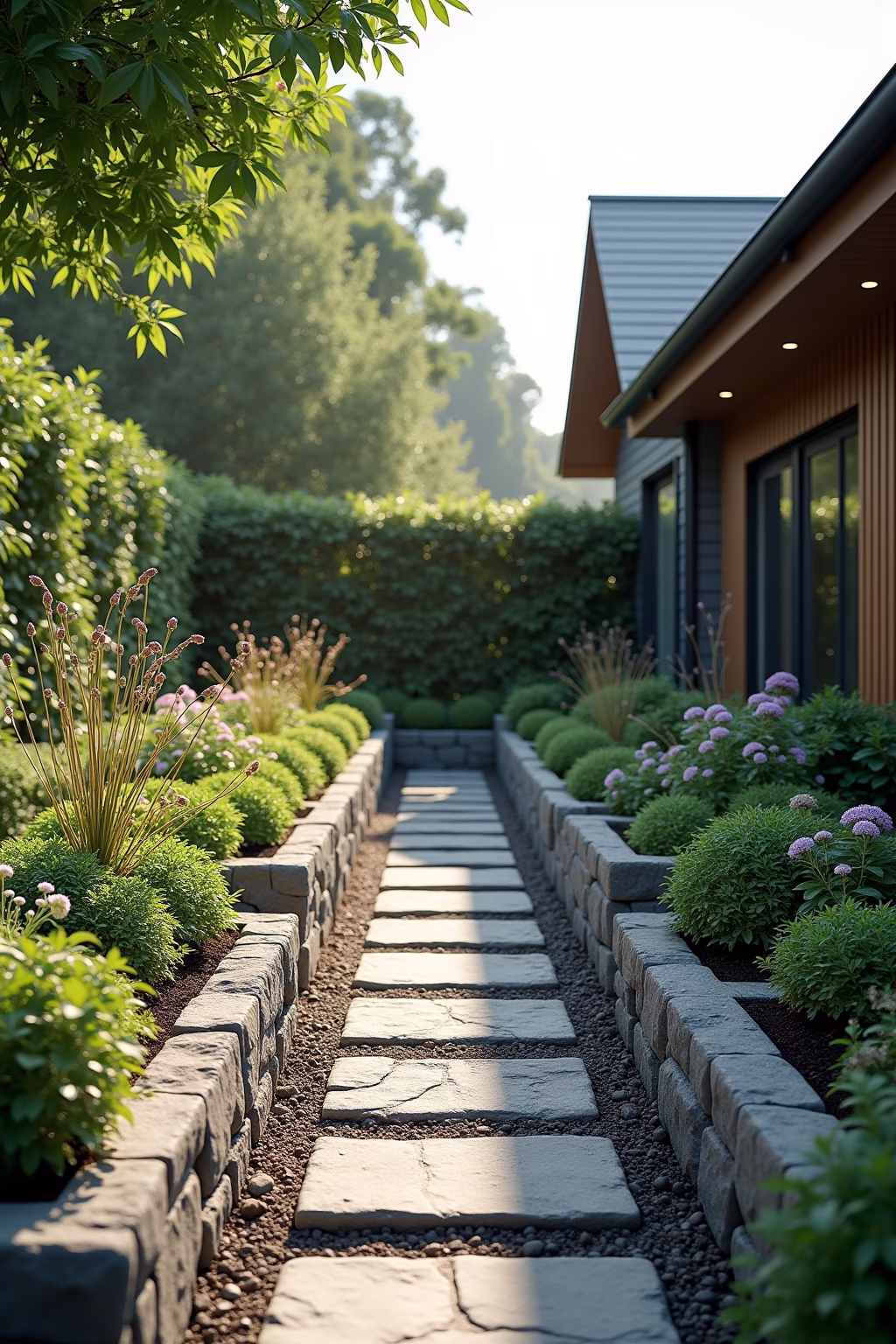 Naturstein-Kombination: Verschiedene Steinarten wie Granit und Schiefer schaffen individuelle Optik und Langlebigkeit.