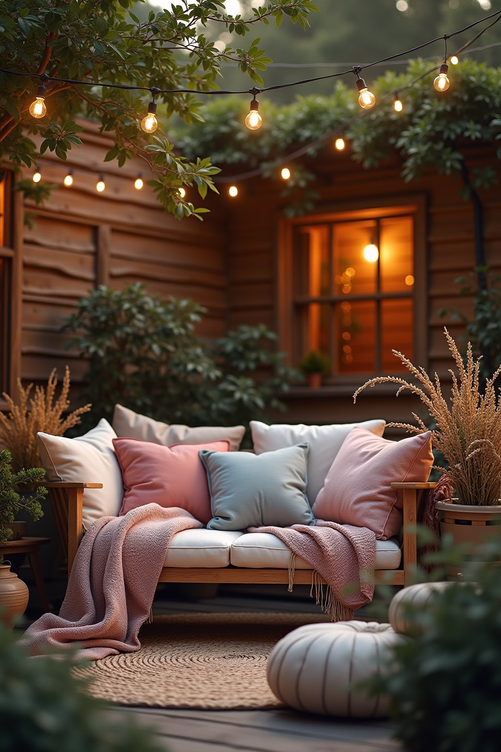 Gemütlichkeit schaffen: Wetterfeste Kissen, Outdoor-Teppiche und stimmungsvolle Beleuchtung verwandeln selbst kleinste Ecken in Wohlfühlorte.