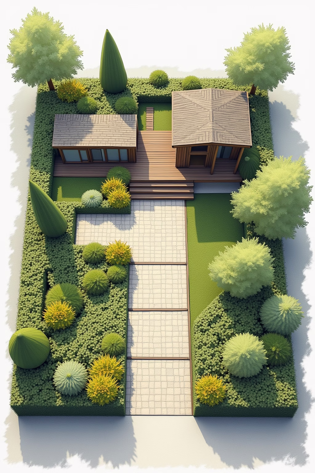 🌿 Gestaltertipp: Bei schmalen Gärten schafft eine diagonale Wegeführung optisch mehr Breite und lässt den Garten großzügiger wirken.