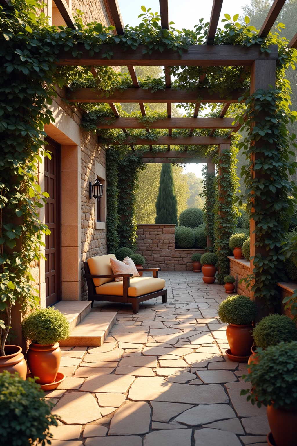 Toskanische Gartenarchitektur: Pergolen, Mauern und Sitzplätze gestalten