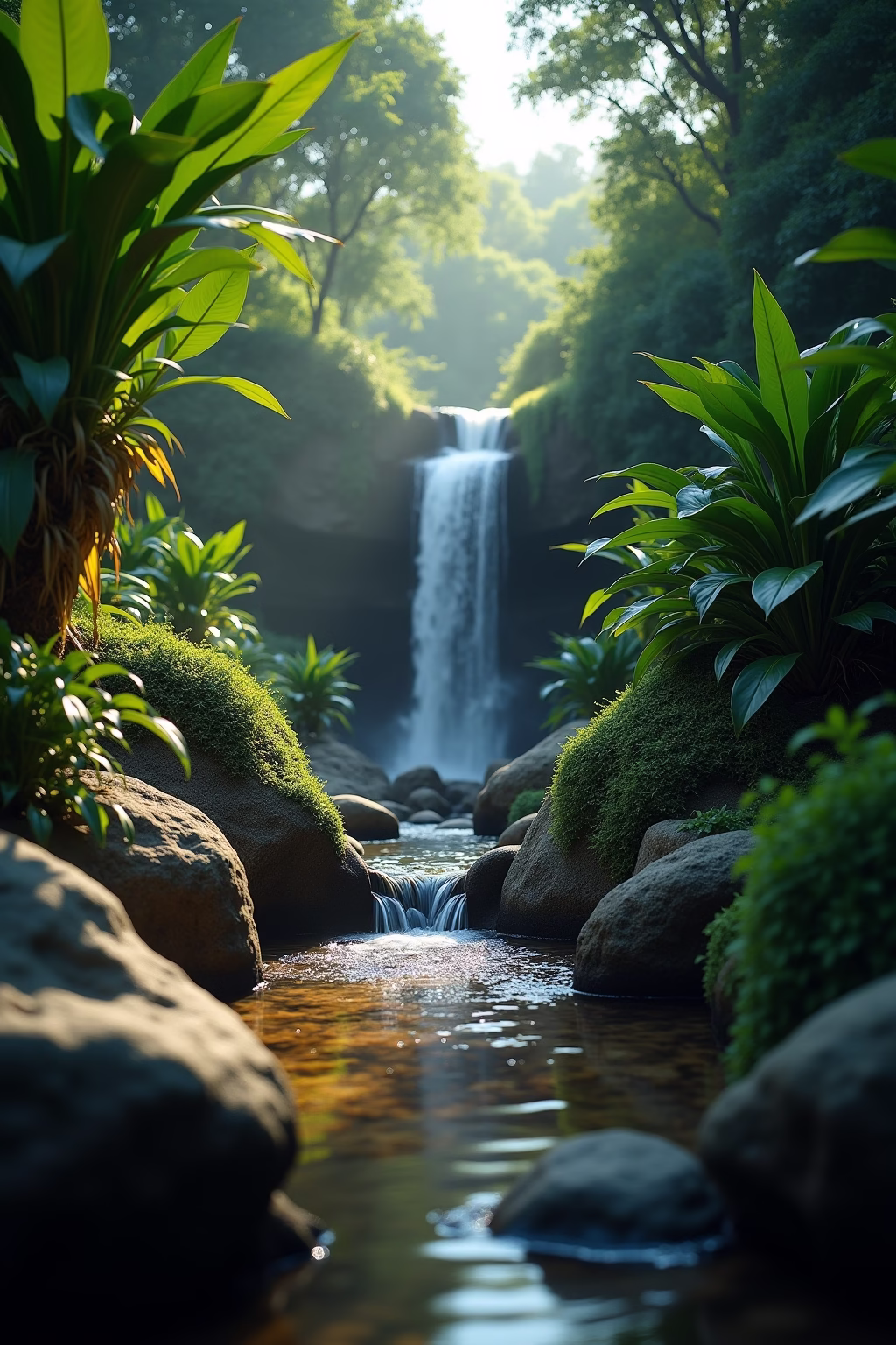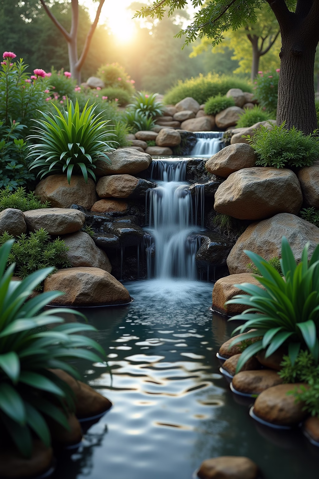 Gestaltung: Kombiniere deinen Wasserfall mit passender Bepflanzung und Beleuchtung für einen besonders eindrucksvollen Effekt.