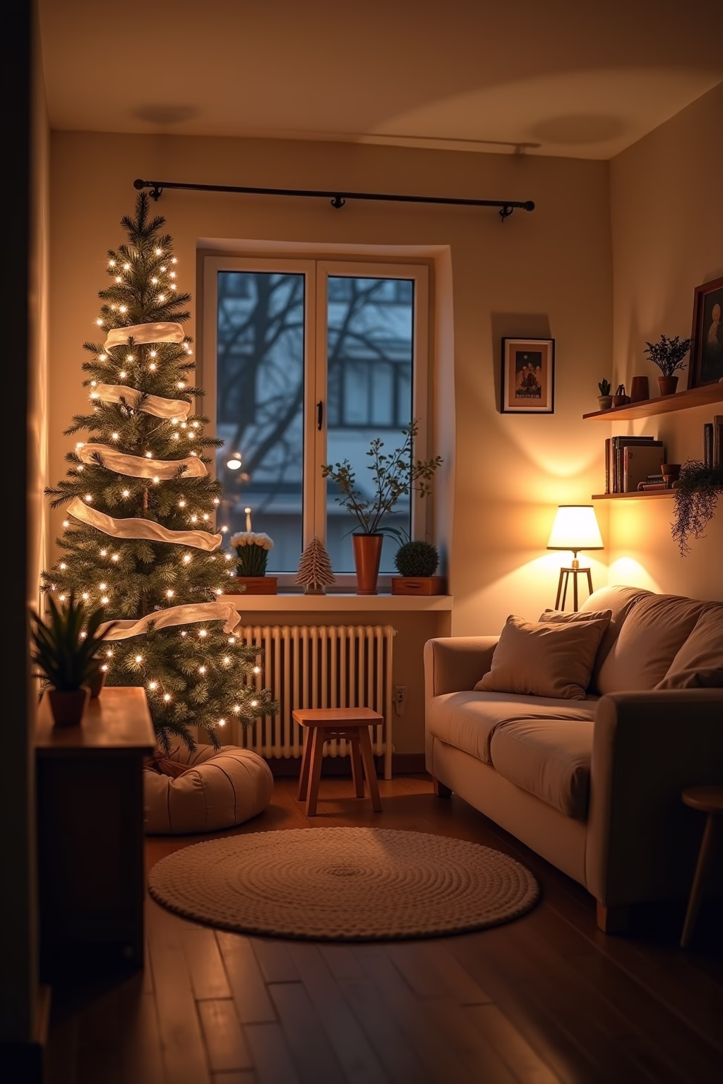 Kompakte Weihnachtsdeko für kleine Räume: Nutzen Sie Wände und Decken statt Bodenflächen für Ihre Dekoration.