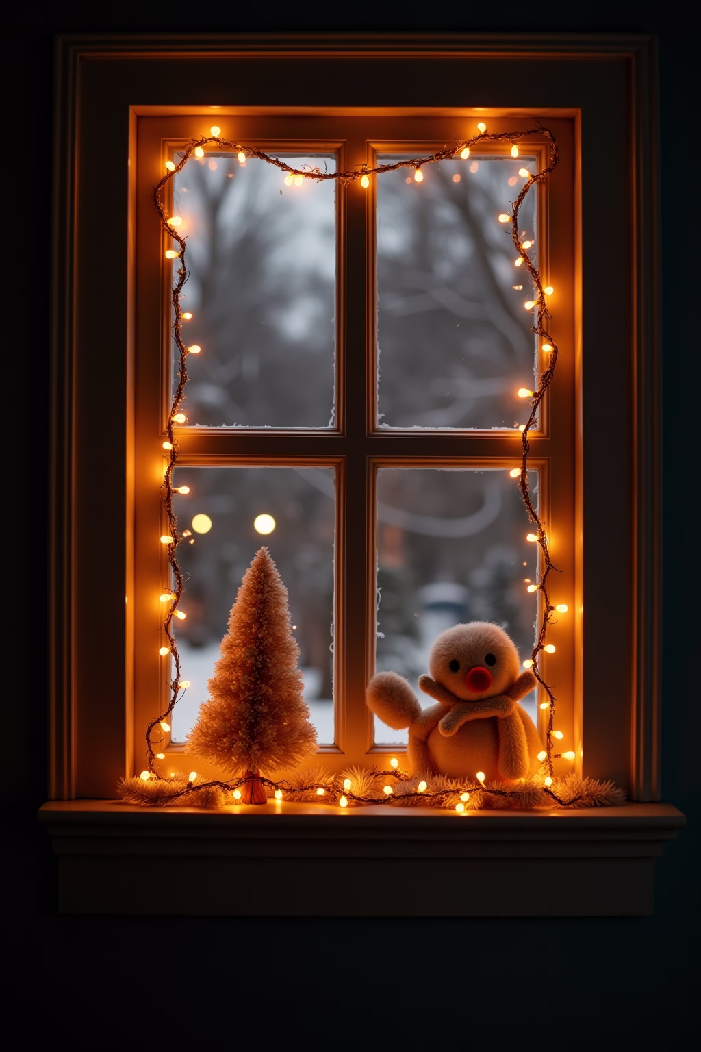 Weihnachtlich dekorierte Fenster als Blickfang in der Wohnung
